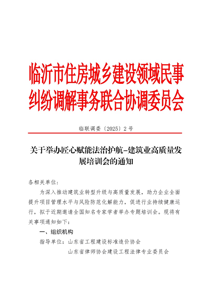 关于举办匠心赋能法治护航-建筑业高质量发展培训会的通知